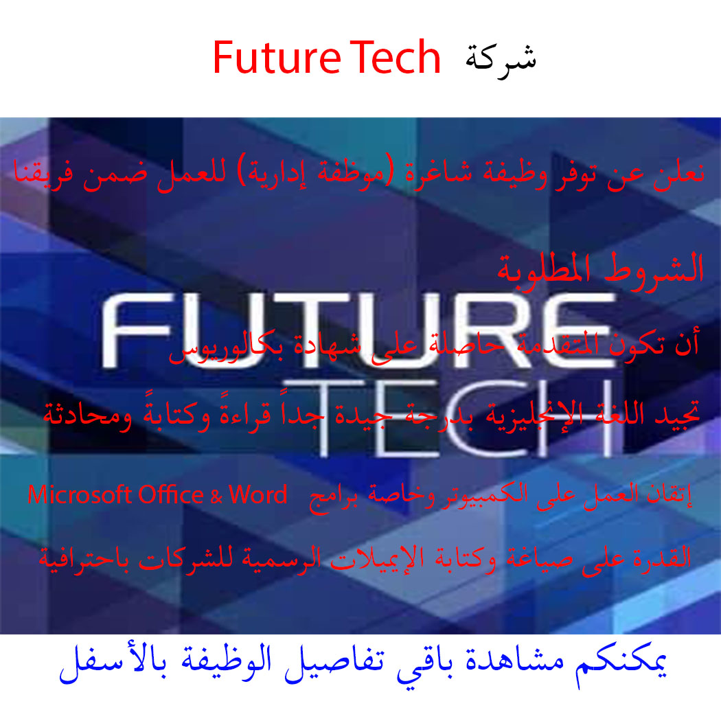 📢 تعلن شركة تقنيات المستقبل للاستيراد والتسويق عن توفر وظيفة شاغرة (موظفة إدارية) للعمل ضمن فريقنا، وفق الشروط التالية:1) أن تكون المتقدمة حاصلة على شهادة بكالوريوس2) تجيد اللغة الإنجليزية بدرجة جيدة جداً قراءةً وكتابةً ومحادثة3) إتقان العمل على الكمبيوتر وخاصة برامج Microsoft Excel وWord بشكل ممتاز4) القدرة على صياغة وكتابة الإيميلات الرسمية للشركات باحترافية5) حسن المظهر، اللباقة في التعامل، والقدرة على التواصل بفعالية6) خبرة عملية لا تقل عن سنة واحدة في مجال ذي صلة.📍 مقرّنا: جنين - شارع السكة - خلف مبنى البلدية 📌 على من تجد في نفسها الكفاءة والرغبة بالانضمام إلى بيئة عمل احترافية، يرجى إرسال السيرة الذاتية عبر البريد الإلكتروني: Dahlasari@gmail.com ، أو التواصل على الرقم: 0599439239وظائف فلسطين... بِكُم نَّكبَر